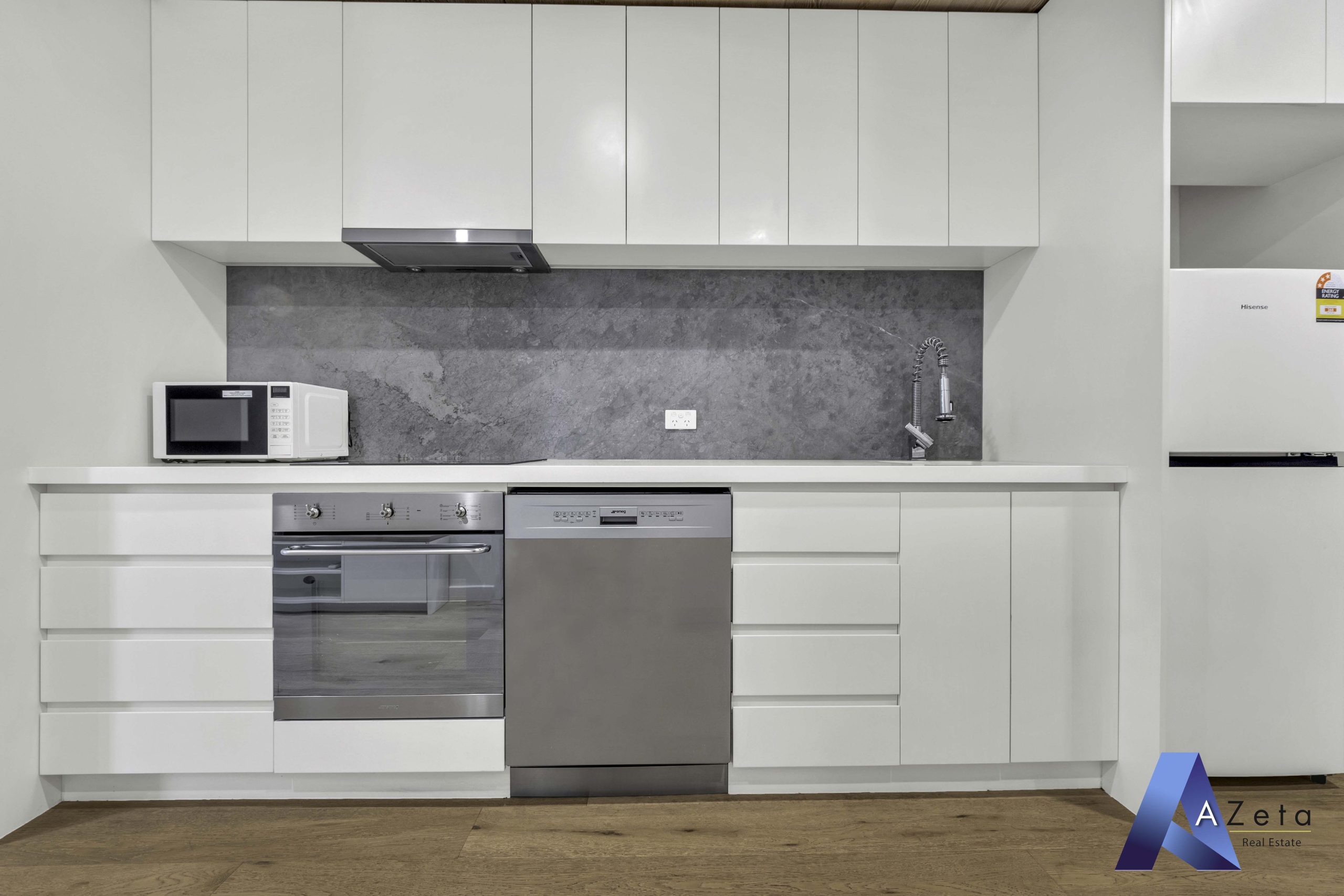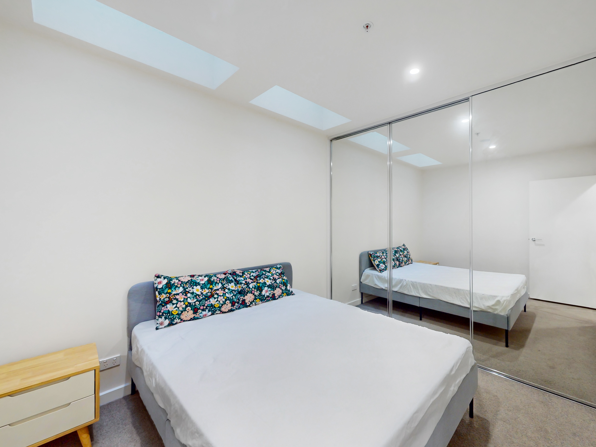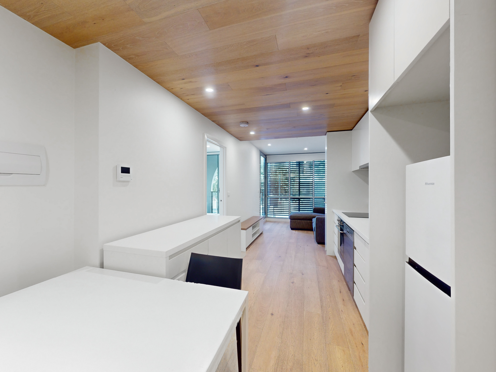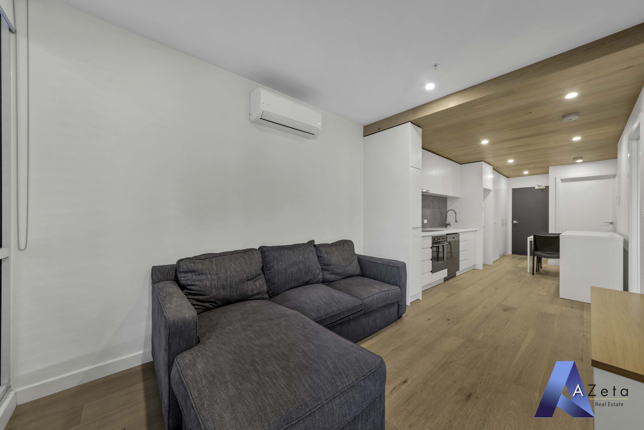 Tranquil and set on the first floor of the low-rise Wallace building, housing only 60 luxury apartments across 7 levels, revel in the expansive comfort of open-plan living and dining. The sleek Smeg kitchen, complete with stone-topped surfaces, an integrated dishwasher, and an inviting island bench, effortlessly flows to a spacious balcony basking in northern light and commanding neighbourhood vistas. The mirror-robed bedrooms, privately positioned, flank a luxurious porcelain-tiled bathroom featuring a stone-finished vanity.